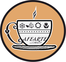 Taza de cafe con dibujos de las 4 estaciones y lleva el nombre cafearte con christiy